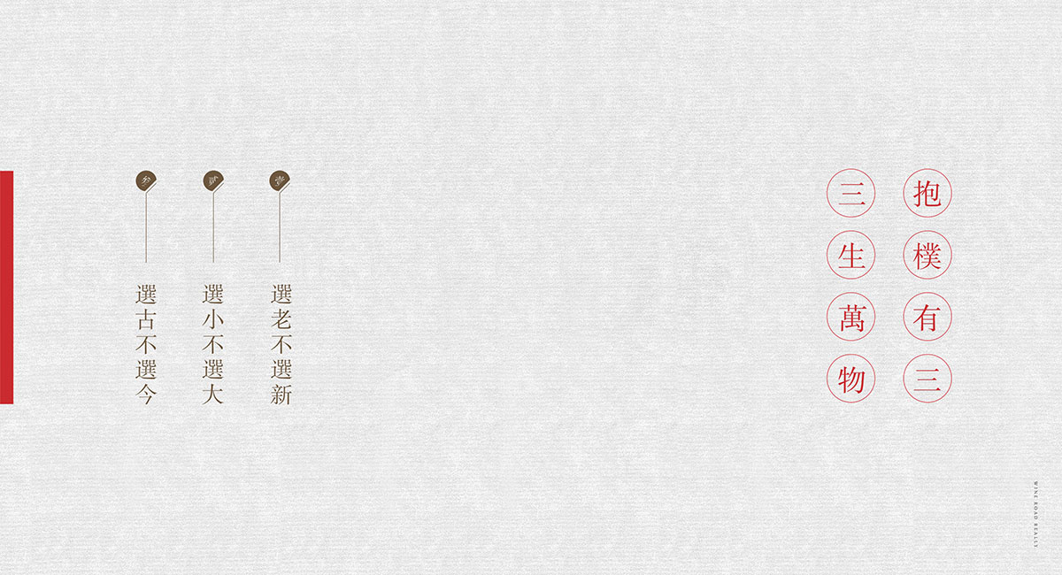 抱樸酒業是成都九一堂品牌策劃設計品牌系統全案服務客戶,前期對品牌定位策劃,品牌vi設計,產品包裝設計有了較大的成果,其中有一個重點就是酒道抱樸體驗中心的打造,整個白酒體驗中心坐落在濟南千佛山腳下,氣候陰涼,植被茂密,是儲酒的絕佳勝地,體驗中心除了對酒道抱樸文化的傳播外,還兼具餐飲,會議,沙龍,娛樂,品酒的功能.抱樸酒業堅持自己的嚴苛甄選標準,選古不選今,選老不選新,選小不選大.構成了抱樸酒業品牌的核心價值.