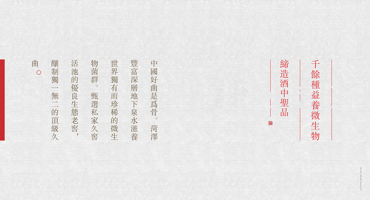 泉都千年雪山百米以下深泉精華--以泉都精華天泉為魂。金山雪水經年久月滲透,浸潤大自然豐富礦物質,層層凈化后純凈甘美、富含豐富有益礦物質,冰冽凈真浸人心脾。恒溫貯藏中國名田好谷--以中國名田好谷精華為實。遍訪中國六大精良谷產區,甄選當季上等谷物精華,領先恒溫貯藏,以谷物最好的狀態釀造中國頂級品質白酒。千余種益養微生物締造酒中圣品--中國好曲是為骨。菏澤豐富深層地下泉水滋養世界獨有而珍稀的微生物菌群。甄選私家久窖活池的優良生態老窖,釀制獨一無二的頂級久曲。國家非物質文化遺產釀酒技藝--魂骨天成,藝在人為。世代傳承未曾斷代的傳統古法釀制技藝,國家級非物質文化遺產大師級團隊潛心鉆研,釀制天人合一的酒中圣品。雅紙封壇忻陶洞藏百年醇香--傳承百年的曠世絕品。中國四大名紙雅紙封壇,百年珍貴忻州土陶封壇,于抱樸專有恒溫洞藏,世間百年而活酒呼吸不絕,悠久美香恒久不褪。
